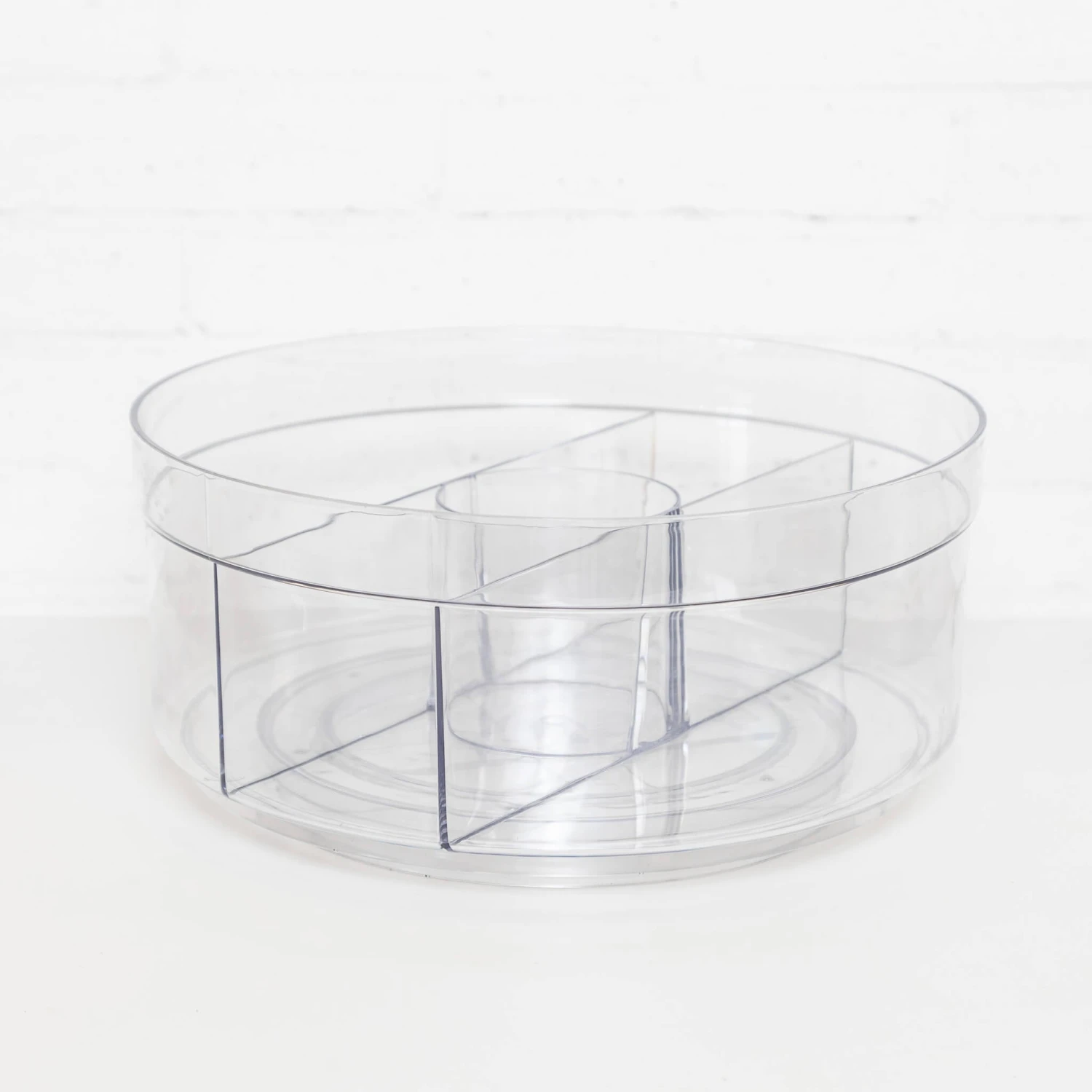This clear durable product is versatile for keeping condiments, packets or spice jars neat, orderly and easily accessible in your pantry. Organise your space with our Crystal Multi Compartment Turntable. This high-quality turntable is perfect for storing various products, whether in the kitchen, pantry, or bathroom! The turning mechanism allows you to store your items away and easily access what is stored inside.