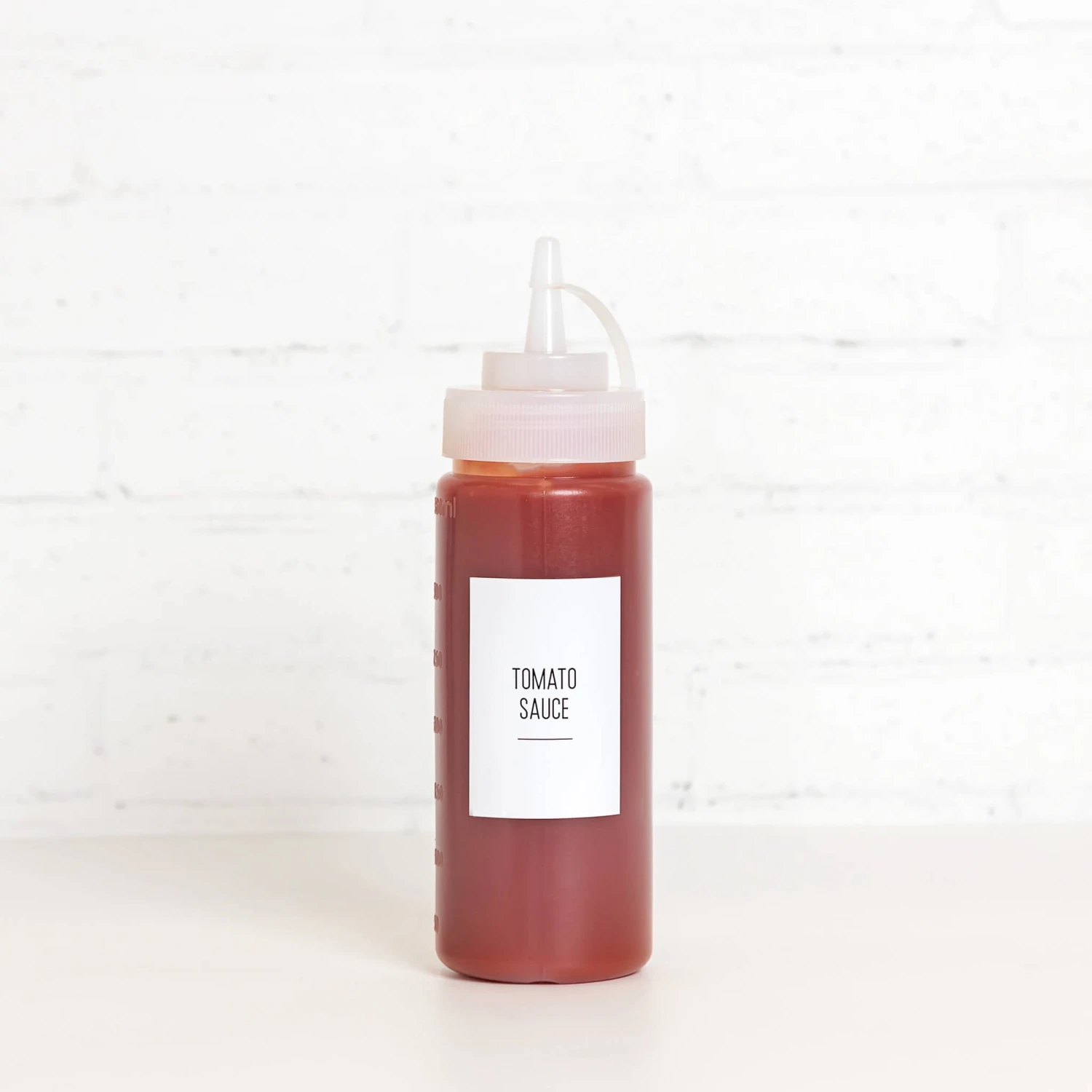 Perfect for homemade sauces or decanting your favourite store bought condiments, this clear ketchup-style plastic bottle features a secure flip-top lid and a soft, squeezable design that makes serving easy and mess-free. Add one of our custom vinyl labels for the ultimate organised pantry or fridge aesthetic.